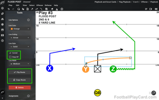 You can now control which players and coverage elements are visible on the field. If you select to hide the defense, then you only need to select the offense when creating a play. If you select to hide the offense, then you only need to select the defense when creating a play.